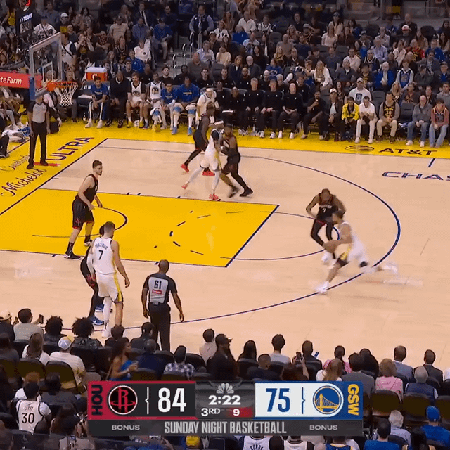勇士打火箭这场,库里给杜兰特上了一堂"预判课"。第二节一次快攻,库里持球推进,KD退防时左脚试探性前伸——他赌库里会像往常一样,运两步撤到三分线外。